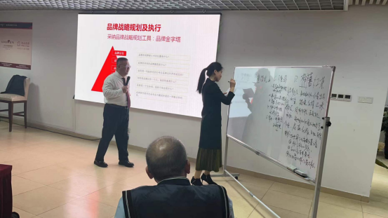在创作品牌金字塔的过程中,各小组的嘉宾也是绞尽脑汁的创作,代表企业表示毕竟是自己的品牌感觉挺容易的,但是一梳理和呈现发现问题很多,远远没有想象中的简单;还有的嘉宾表示,感觉就是几句话,但就是写不出来有效的有杀伤力的结果,这就是专业的差距。